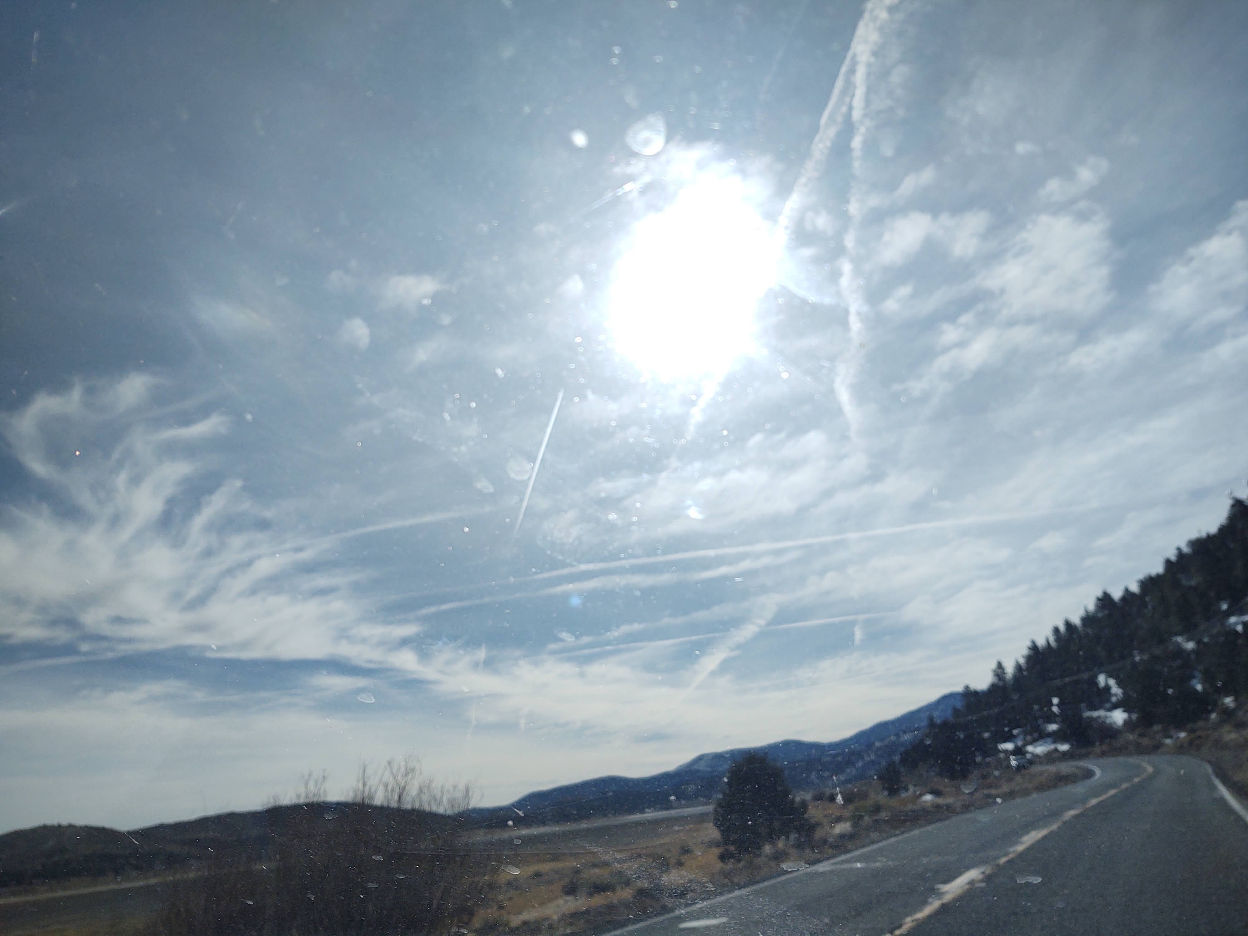 And, as usual, I’m fixing coffee and stoking up last night’s fire with some paper trash, car-part’s receipt I think, and a little tinder..bits of ply-wood and 2-bi’s from Elizabeth&Cougar’s bus project (we’re really only a couple months out from Christmas, give or take, right after Valentine’s Day, so it’s still a little cold out there, around 5:15); and having done that (light the fire), and being a real stand-up guy that I am, I figured I’ll be nice to the dumb dog and take her downstairs, and around to the backyard so she can play a little, maybe even pee; when what do I see in the pre-dawn celestial regions, looking up there? Something weird! with precise, matching stellar magnitude (that’s a fairly exact scientific measure of illumination, by the way, in astronomical terms..you see I’m an educated fellow, having gone to city-college, and on more than one occassiio!) with other comparable twinkling things, I observed a strand of lights moving in the night sky, of a number of between fifty and a hundred – a mere guess! it was such a novel event I didn’t in the moment think to assess them closer and arrive at a more exact number – traveling in a very straight line, in relation to each other, parade-like, and perpendicular to our perspective, at an angle receding by dead reckoning to south by southwest from where I stood holding the leash staring dumbly in the dark, a mute beast by my side (perhaps I better had consulted, before stepping out into the lower stratosphere, here, the old, sage aburbecondita, for any forecasts concerning strange happenings in the nighttime skies..in daylight, of course, we can see them, chem-trails, –and here, just a thought: Are their purposes somehow co-mingled? difficult to know). A similar, though more easily explainable apparition commonly occurs at our rural location, off, to the side of a country road (by a fire department! Hmm..) which is simply the illusion of moving lights in the astral plane from reflections on telephone-wires strung, on telephone-poles, along the thoroughfare, occasioned by the approaching headlights of automobiles, piloted by people in a sort-of twilight zone, who obviously have no concern, whatsoever, about spreading deadly germs (or whatever), in public places, nor complying with direct orders from headquarters! and as such, instead, are continually,CONTINUALLY!! focusing all their efforts entirely on bent-nail ugly, self-centered pursuits involving capitalism’s, and U.S. Constitution’s and enumerated rights and so on, and so on..creepy individuals, who most likely voted for Trump..anyway’s,